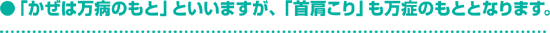 「かぜは万病のもと」といいますが、「首肩こり」も万症のもととなります。